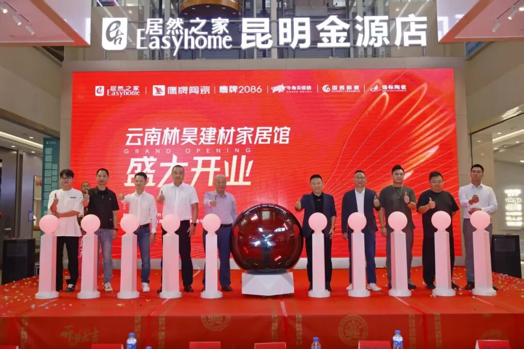云南林昊建材家居馆开业启动仪式更是将现场气氛推向高潮,鹰牌实业总裁陈贤伟先生、鹰牌实业副总裁陈方根先生、居然智家云南分公司总经理孟祥一先生、云南林昊建材有限公司林嘉祺先生等嘉宾依次登台,共同为家居馆的辉煌启航助力。随着启动装置按下,金球缓缓滚动,预示着未来必将生意兴隆、财源广进。