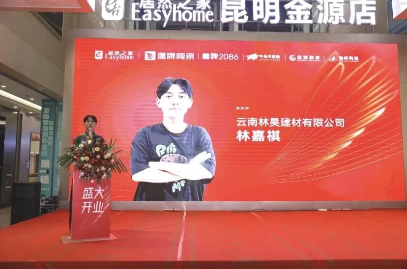 随后,鹰牌集团总裁陈贤伟上台为新店开业致辞 陈总表示:深耕建陶行业51载,鹰牌集团作为行业领军者,在疫情挑战下依然实现逆势增长。这份成绩,离不开云南昆明经销商林总及其团队的不懈努力与坚定支持。无论是在产品销售还是品牌推广方面,林总团队始终与鹰牌集团战略同频共振,密切协作,展现出卓越的执行力与专业精神。