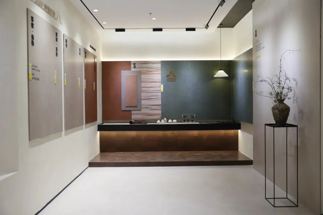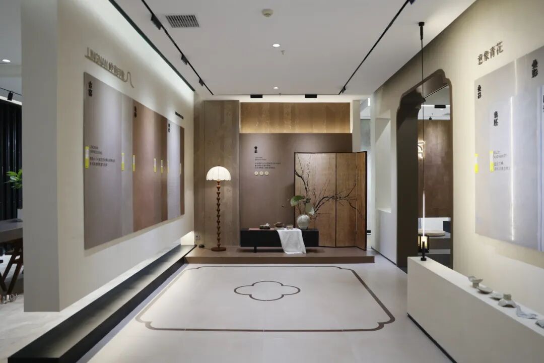 整个产品布局精准对应多元风格需求,涵盖现代东方、禅意侘寂、新中式与中古风等,不仅呈现高端瓷砖的品质表现,更提供从材质选择、搭配方案到空间灵感的一体化服务,满足西南市场对个性化与美学深度的追求。