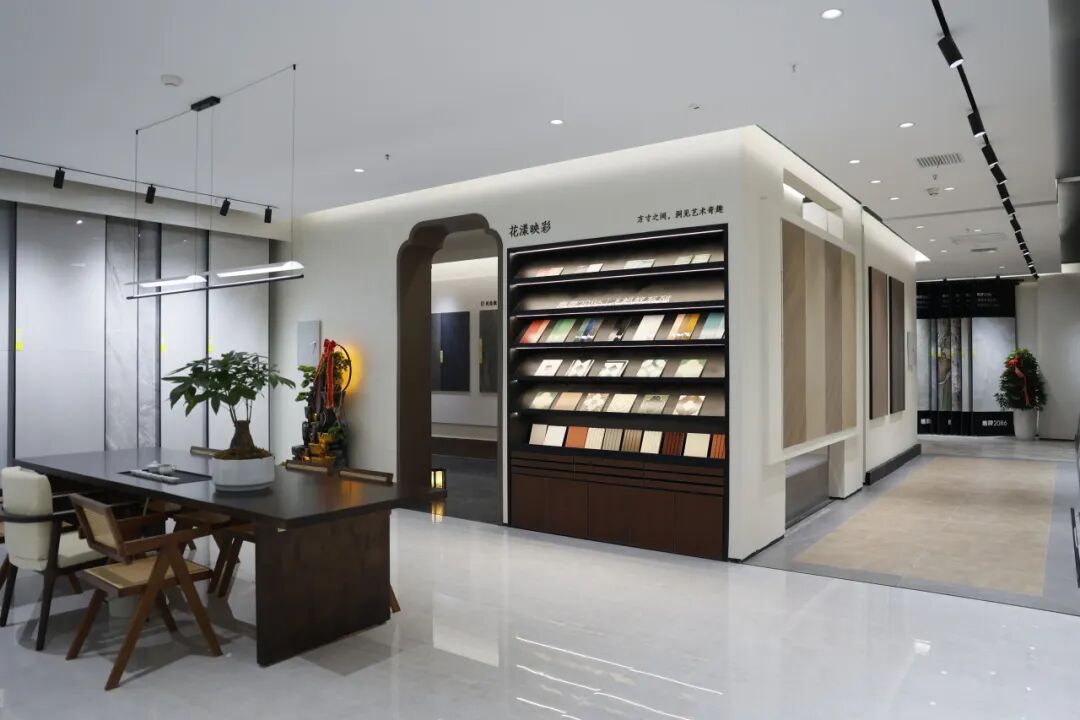 展厅内特别打造了「水墨京砖」、「意象青花」、「岭南印象」三大文化主题选材区,以当代设计语言转译传统符号,重新诠释高端瓷砖的艺术内涵与场景价值,为消费者营造兼具沉浸感与完整性的材质体验空间,传递品牌对东方美学当代化、空间化的持续思考与探索。