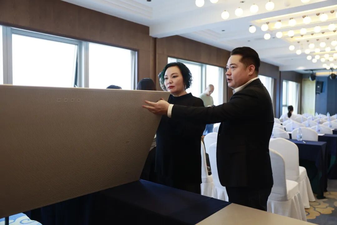 在热烈的掌声中,鹰牌集团企划中心产品总监严文梦对“岭南印象”新品系列展开全方位深度解读。她从岭南文化本源切入,阐述了该系列的开发灵感与创作脉络,详细介绍产品所采用的创新工艺,并结合丰富的空间应用案例,直观呈现系列产品在美学表达与实用功能上的精妙平衡。
