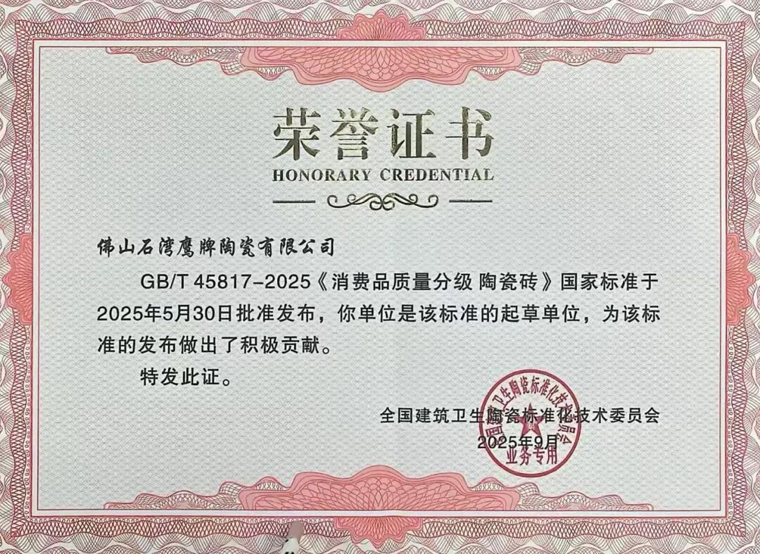 作为陶瓷行业的领军品牌,鹰牌2086送检产品在本次测评中成功通过该标准的最高等级——5A(AAAAA)级认证,成为业内首批获此权威认可的企业之一。