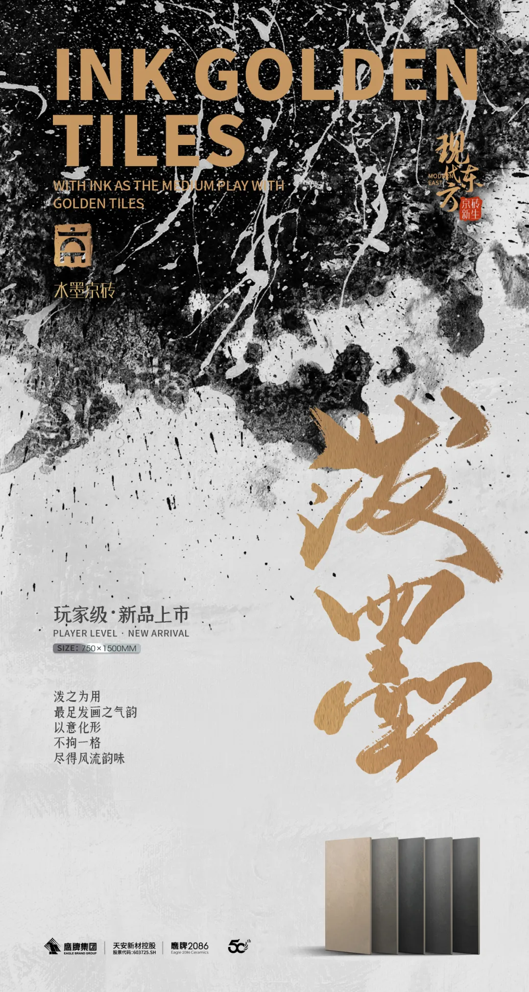 在陶瓷砖产品同质化日益严重的市场背景下,鹰牌2086不仅将产品质量做到极致,更深耕于东方文化的传承与创新。其打造的三大核心原创IP产品——水墨京砖、意象青花与岭南印象,凭借严谨而深厚的东方文化底蕴,与市场同类品牌形成了鲜明区隔。